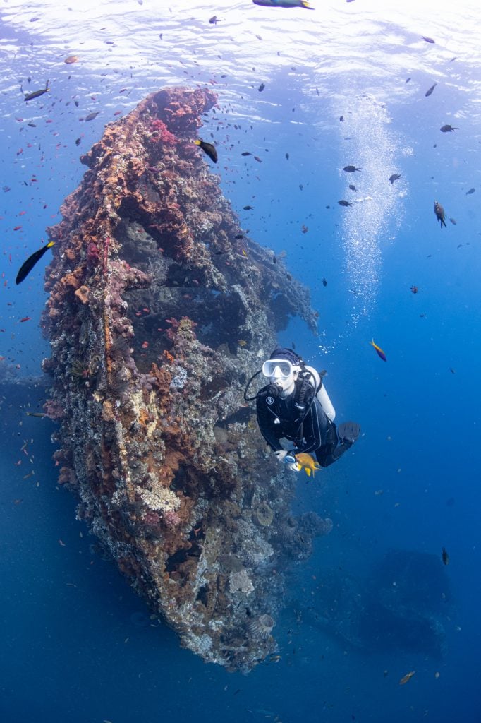 Divers can explore the various compartments of the ship, swim through its corridors, and marvel at the diverse ecosystem that has developed around it. The wreck is home to schools of fish, including barracuda, snapper, and trevally, as well as larger creatures like turtles, rays, and even the occasional hammerhead shark.