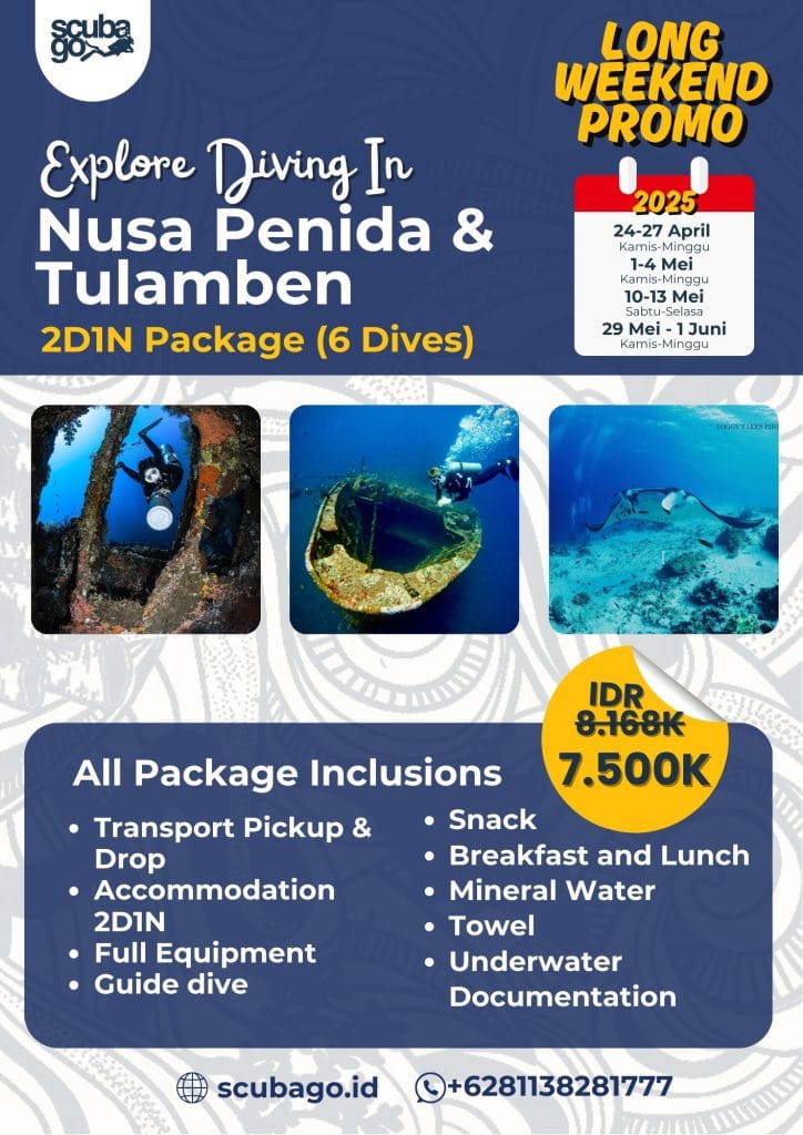 Explore the stunning underwater world of Nusa Penida & Tulamben with our exclusive 2D1N Package (6 Dives)!
